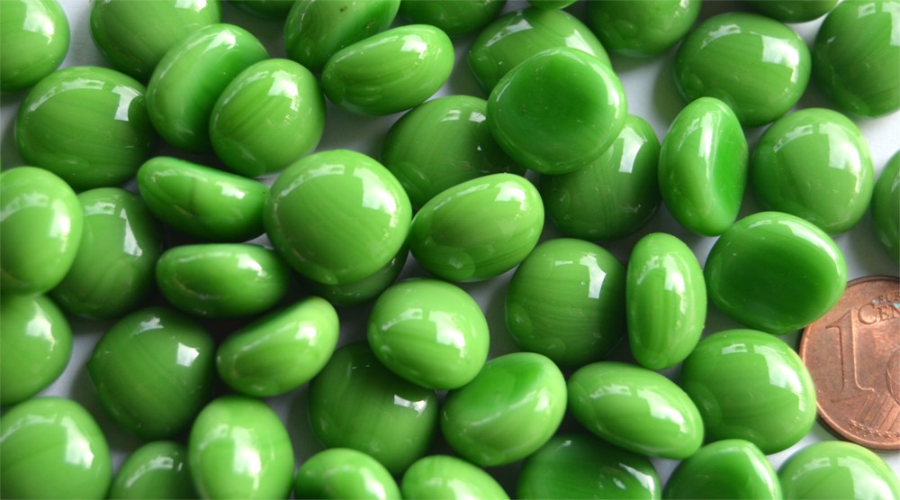 70 Gramm (ca. 50 Stück) Mini Glasnuggets Größe ca. 10-12 mm grün opak, NICHT transparent