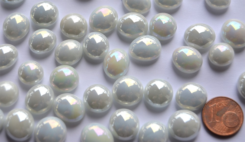 70 Gramm (ca. 50 Stück) Mini Glasnuggets Größe ca. 10-12 mm weiß opak irisierend, NICHT transparent