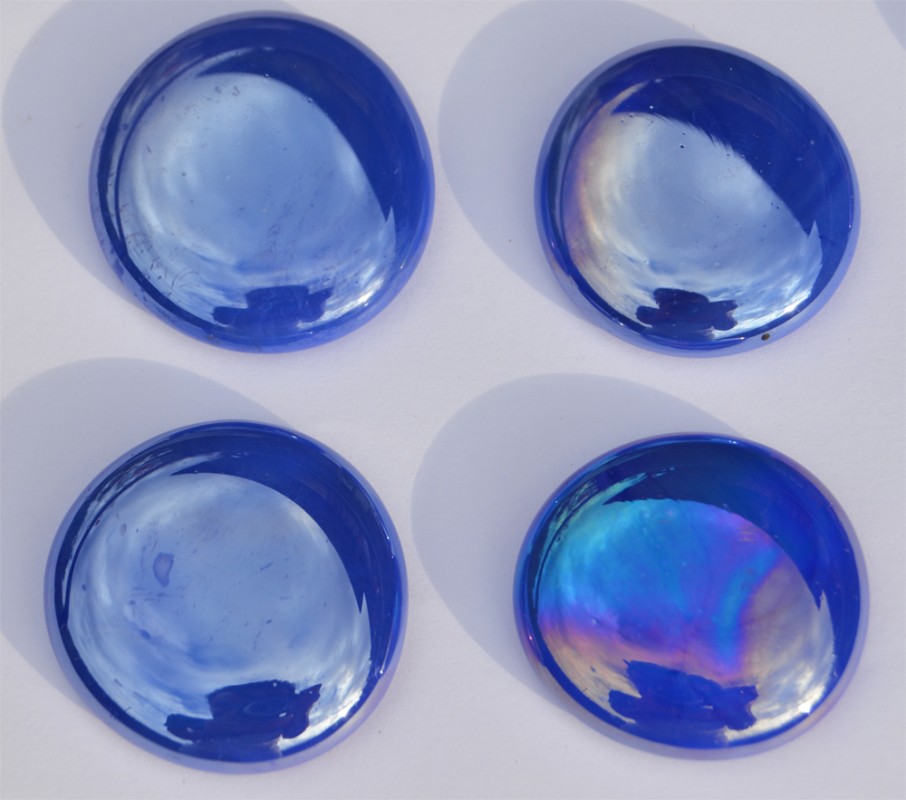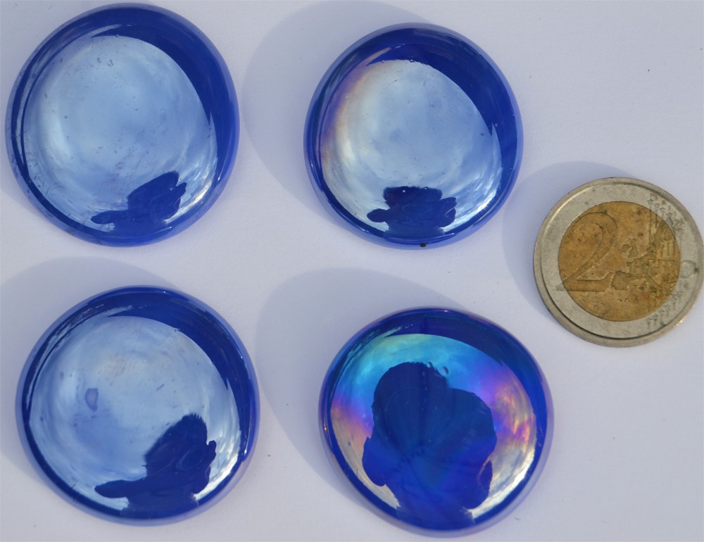 4 Stück (ca. 70 Gramm) Dekosteine  XL 32-37 mm kobaltblau opak hochglänzend teilweise irisierend (nicht transparent)