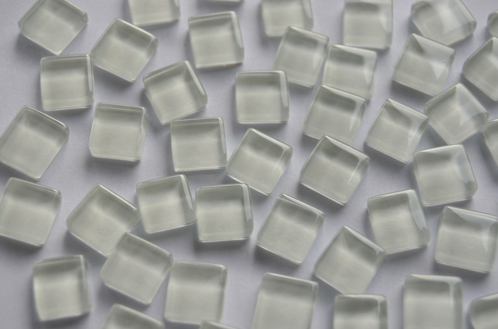 Die Glas- Mosaiksteine haben eine schön glänzende, transparente Oberfläche, wobei das Glas auf der Unterseite eingefärbt ist, mit abgerundeten Kanten. Auf der Rückseite sind sie weiß beschichtet.
