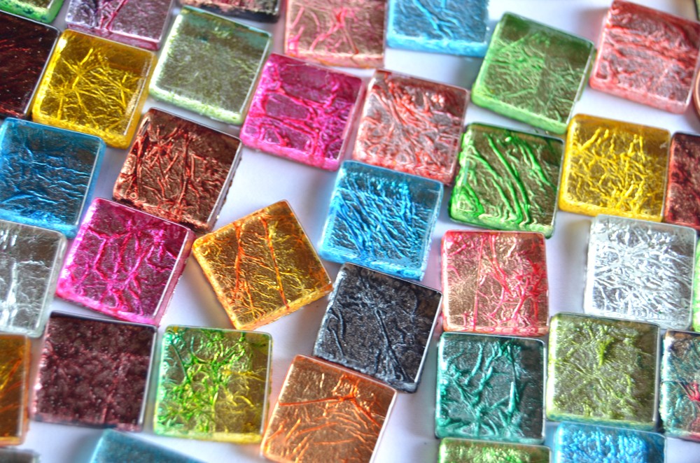 Diese Glas- Mosaiksteine können einfach mit Glasschneider geschnitten werden. Sie sind auf der Unterseite außergewöhnlich glänzend farbig strukturiert und gemustert und können ihren Bastelarbeiten das gewisse Etwas verleihen.
