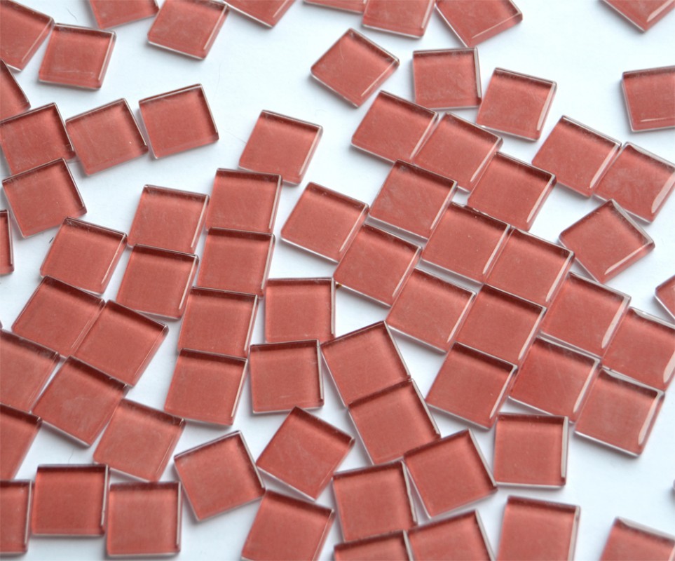 200 Gramm (ca. 50 Stück) Softglas Mosaiksteine a 2x2 cm glänzend rosa