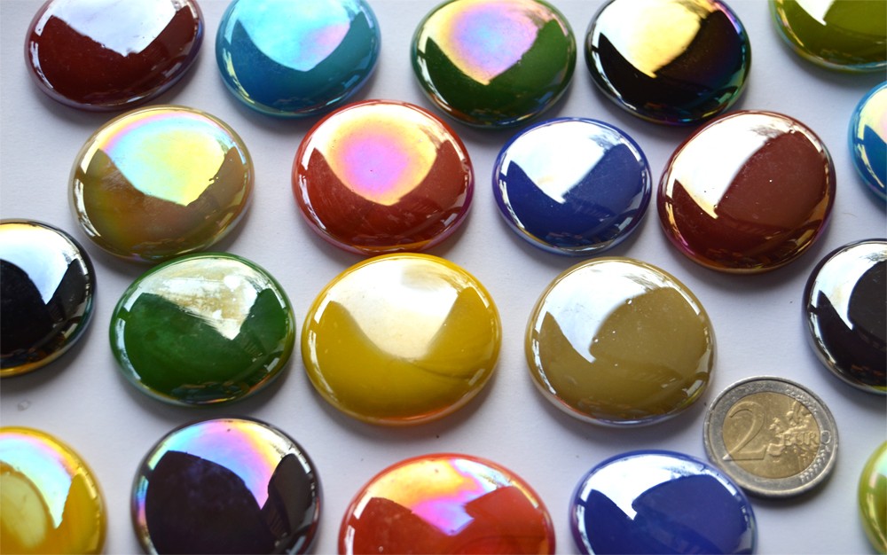 200 Gramm (ca. 10-12 Stück) Dekosteine 32-37 mm XL, opak hochglänzend teilweise irisierend (nicht transparent)