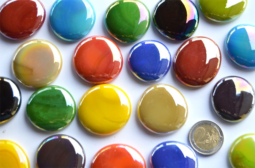 Die schönen Dekosteine kann man auch als Tischdekoration benutzen. Sie lassen sich jederzeit mit unseren anderen Mosaiksteinen kombinieren und bieten unzählige Gestaltungsmöglichkeiten für Spiegelrahmen, Schalen, Vasen, für Mosaikbastelarbeiten aller Art.