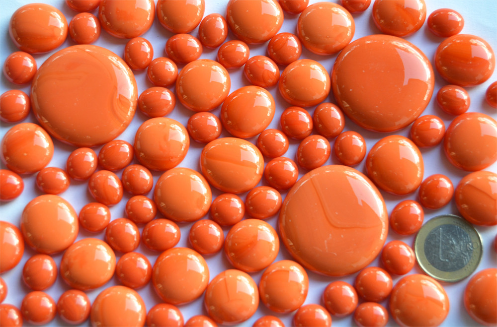 230 Gramm (ca. 75 Stück) Glasnuggets orange Premium-Mix opak in 3 verschiedenen Größen (nicht transparent)