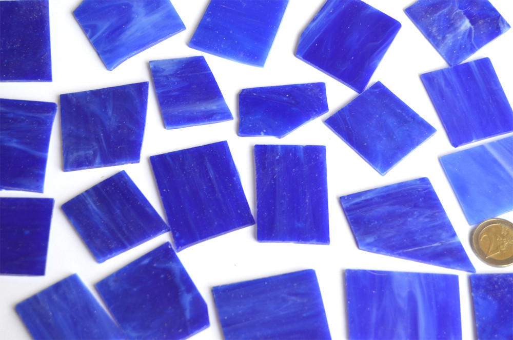 200g (ca. 15-17 St.) Tiffany-Glas Bruchmosaik kobaltblau halbtransparent